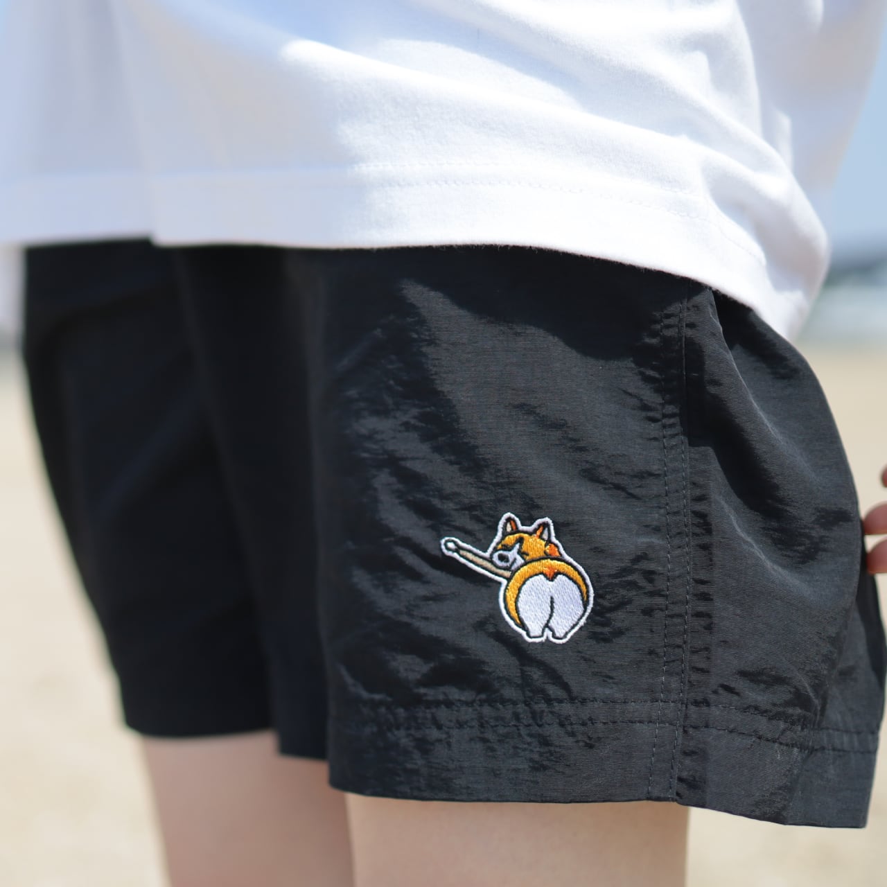 ブランドキャラクターである「とろめるどっぐ」の刺繍ロゴが入ったショートパンツです。